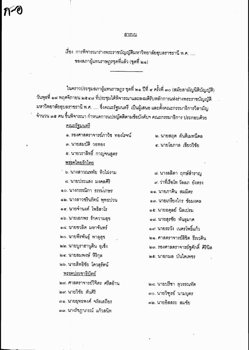 ชื่อเอกสาร : ๑.๑๑ ร่างพระราชบัญญัติมหาวิทยาลัยอุบลราชธานี พ.ศ. ....