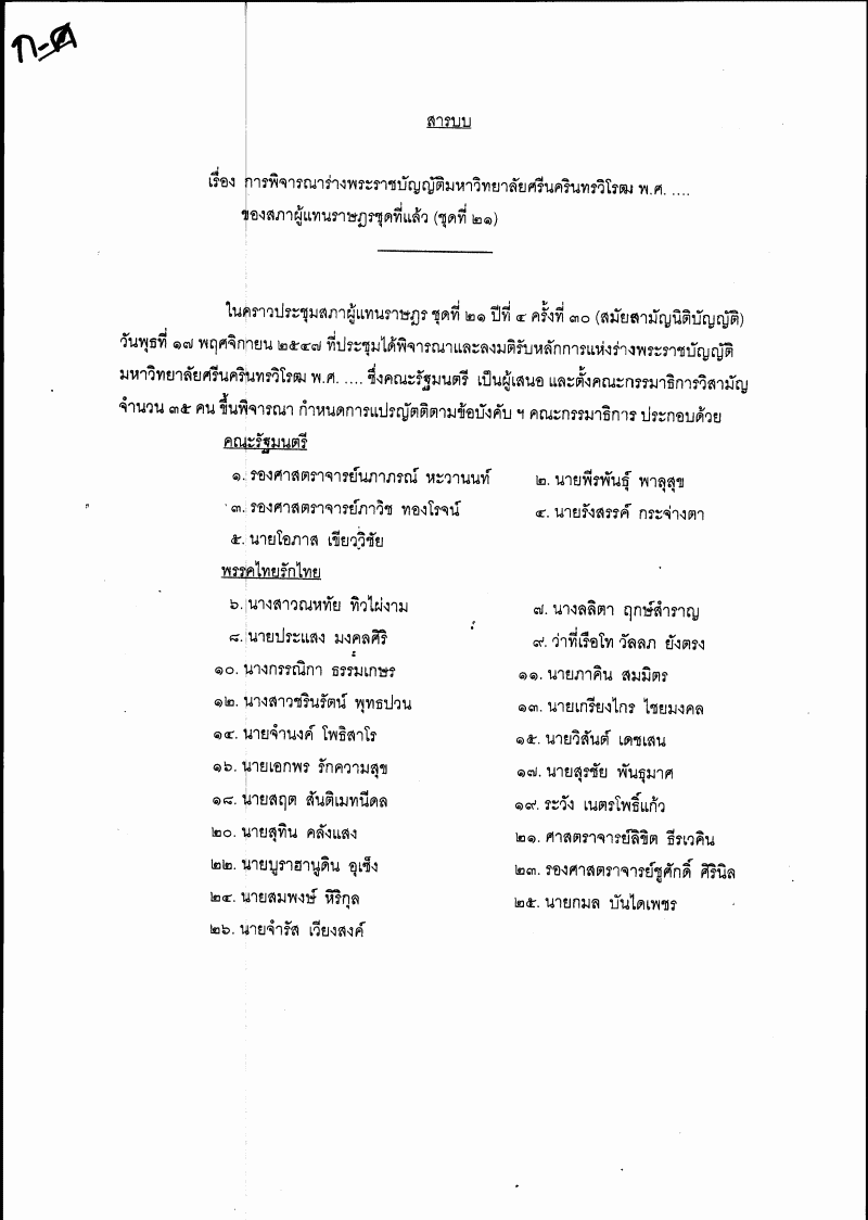 ชื่อเอกสาร : ๑.๑๒ ร่างพระราชบัญญัติมหาวิทยาลัยศรีนครินทรวิโรฒ พ.ศ. ....