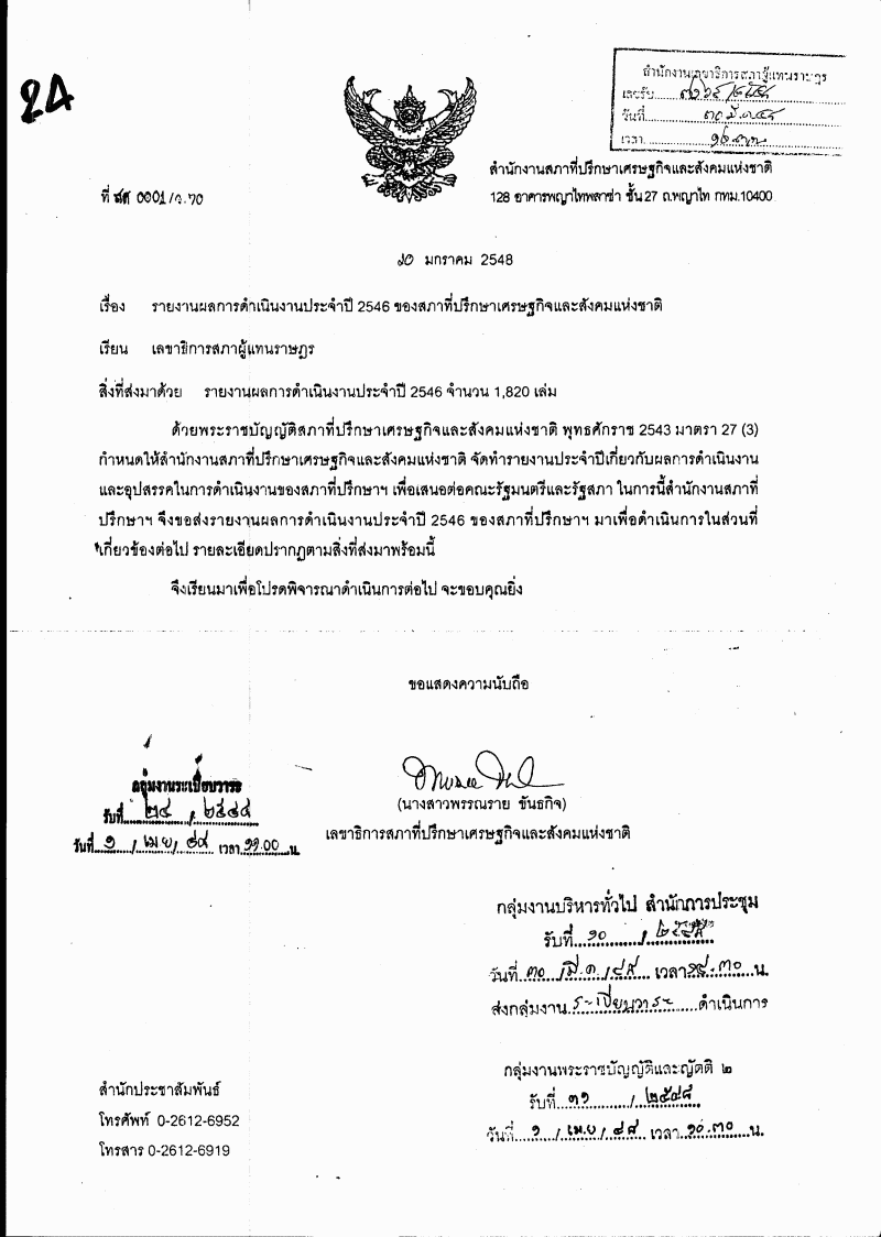 รับทราบรายงานผลการดำเนินงานประจำปี 2546 ของสภาที่ปรึกษาเศรษฐกิจและสังคมแห่งชาติ |