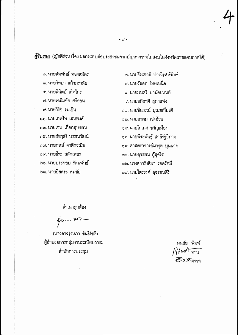 • ญัตติด่วน เรื่อง ผลกระทบต่อประชาชนจากปัญหาความไม่สงบในจังหวัดชายแดนภายใต้ (นายเจะอามิง โตะตาหยง กับคณะ เป็นผู้เสนอ)