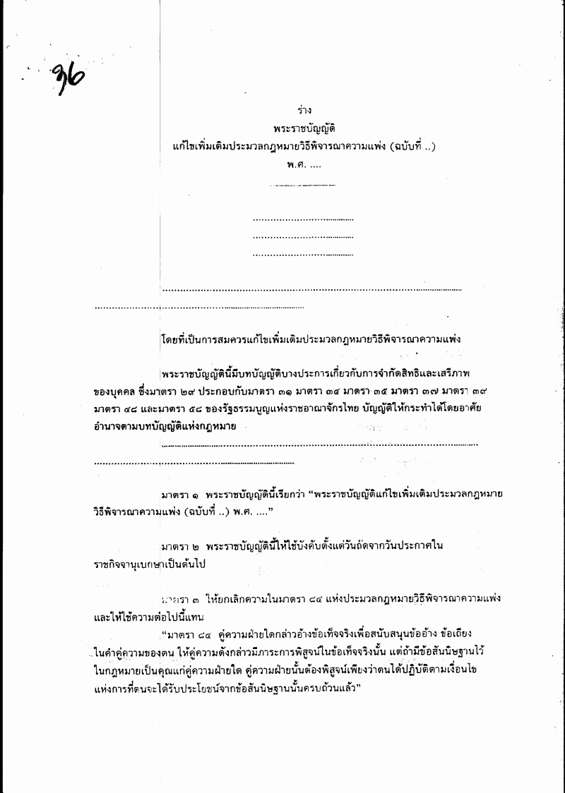 • ๑.๑๗ ร่างพระราชบัญญัติแก้ไขเพิ่มเติมประมวลกฏหมายวิธีพิจารณาความแพ่ง (ฉบับที่ ..) พ.ศ. .... (แก้ไขเพิ่มเติมภาค ๑ ลักษณะ ๕ ว่าด้วยพยานหลักฐาน)