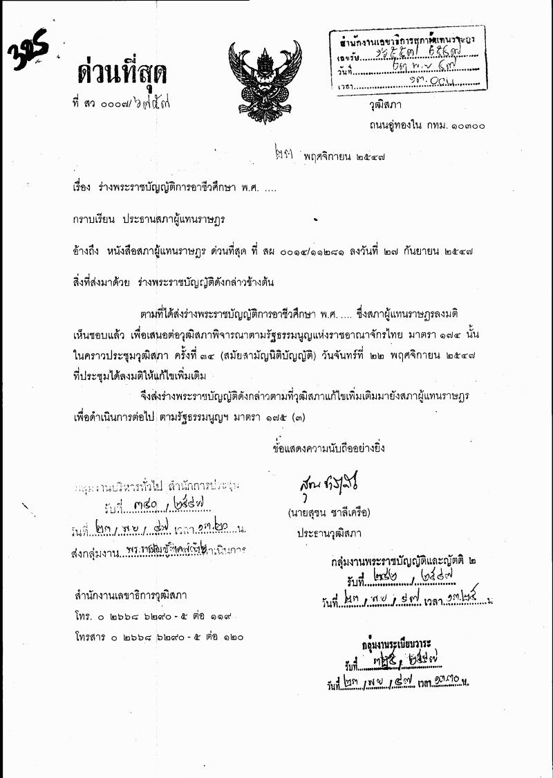 ๑.๓ ร่างพระราชบัญญัติการอาชีวศึกษา พ.ศ. ....