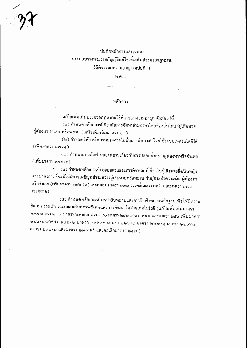 • ๑.๑๘ ร่างพระราชบัญญัติแก้ไขเพิ่มเติมประมวลกฏหมายวิธีพิจารณาความอาญา (ฉบับที่ ..) พ.ศ. .... (แก้ไขเพิ่มเติมภาค ๑ ลักษณะ ๕ ว่าด้วยพยานหลักฐาน)