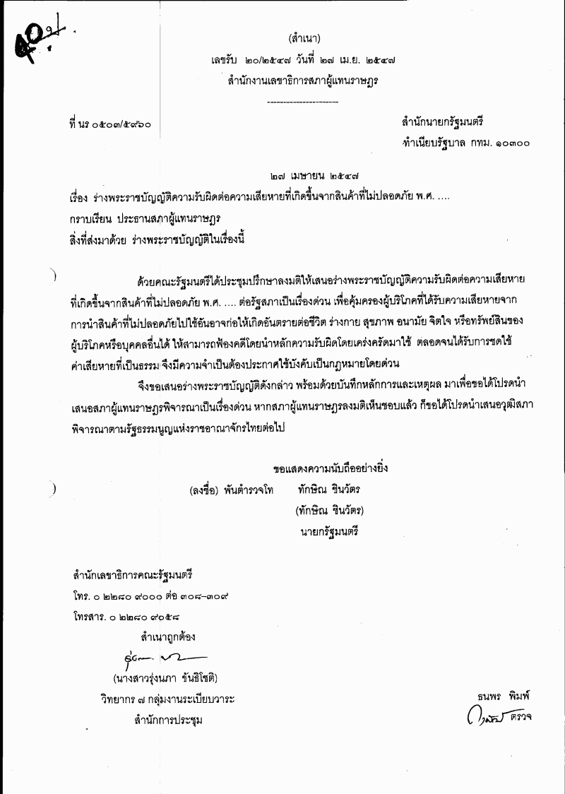 ชื่อเอกสาร : ๑.๒๒ ร่างพระราชบัญญัติความรับผิดต่อความเสียหายที่เกิดขึ้นจากสินค้าที่ไม่ปลอดภัย พ.ศ. ....