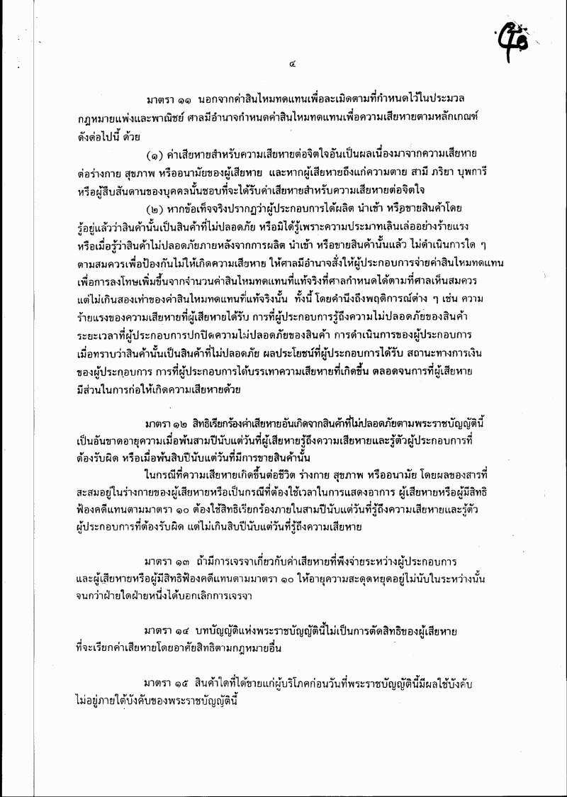 • ๑.๒๒ ร่างพระราชบัญญัติความรับผิดต่อความเสียหายที่เกิดขึ้นจากสินค้าที่ไม่ปลอดภัย พ.ศ. ....