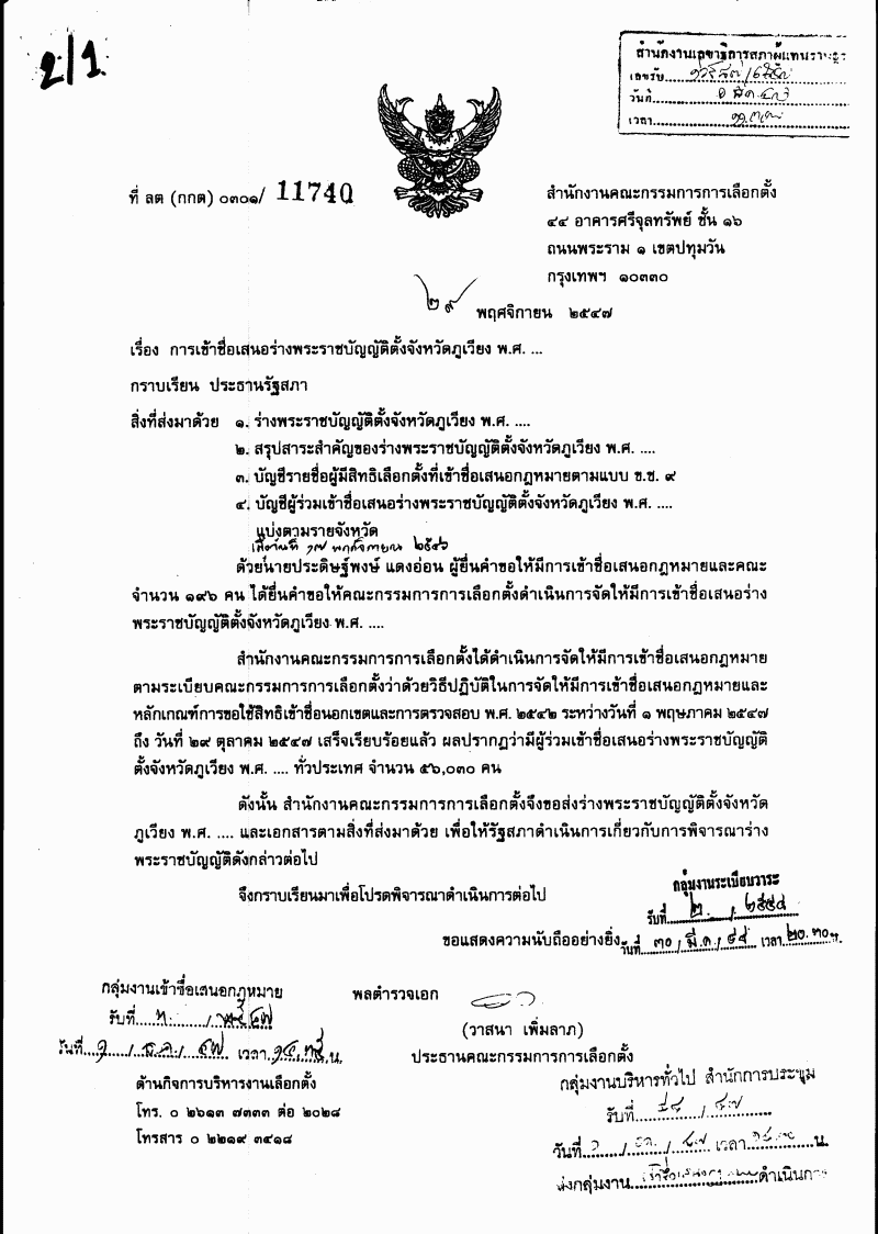 • ๖.๒ ร่างพระราชบัญญัติตั้งจังหวัดภูเวียง พ.ศ. ....