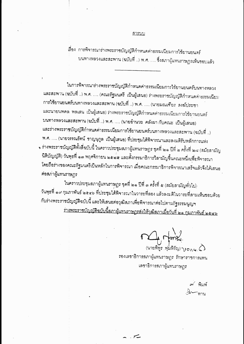 • ร่างพระราชบัญญัติกำหนดค่าธรรมเนียมการใช้ยานยนตร์บนทางหลวงและสะพาน (ฉบับที่ ..) พ.ศ. ....