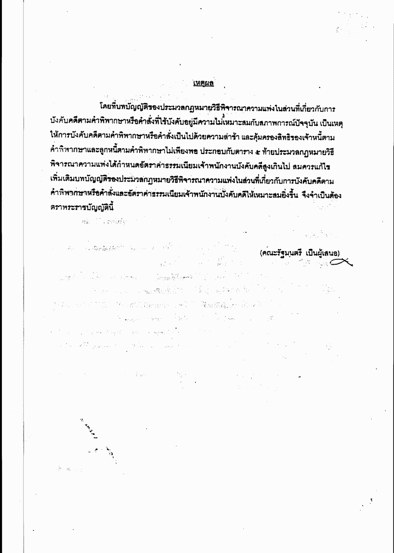 • ร่างพระราชบัญญัติแก้ไขเพิ่มเติมประมวลกฎหมายวิธีพิจารณาความแพ่ง (ฉบับที่ ..) พ.ศ. .... (ปรับปรุงการบังคับคดีการคุ้มครองสิทธิเจ้าหนี้ฯ
