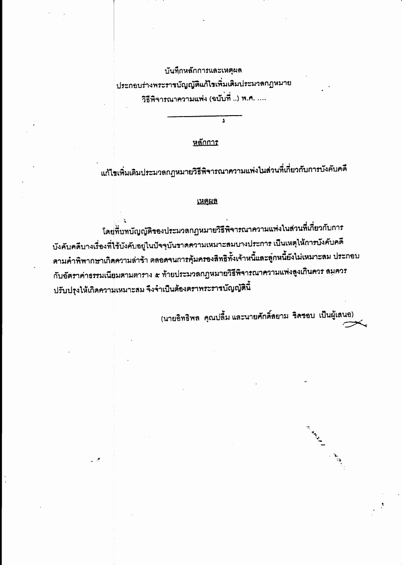 • ร่างพระราชบัญญัติแก้ไขเพิ่มเติมประมวลกฎหมายวิธีพิจารณาความแพ่ง (ฉบับที่ ..) พ.ศ. .... (ปรับปรุงการบังคับคดีการคุ้มครองสิทธิเจ้าหนี้ฯ