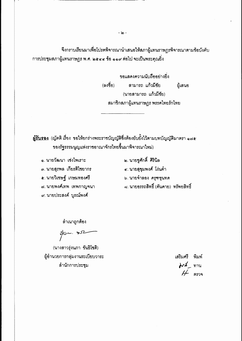 • พิจารณาเรื่อง ขอให้ยกร่างพระราชบัญญัติซึ่งต้องยับยั้งไว้ตามบทบัญญัติมาตรา 175 ของรัฐธรรมนูญแห่งราชอาณาจักรไทยขึ้นมาพิจารณาใหม่ (ร่างพระราชบัญญัติทางหลวง (ฉบับที่ ..) พ.ศ. .... (นายสามารถ แก้วมีชัย เป็นผู้เสนอ)