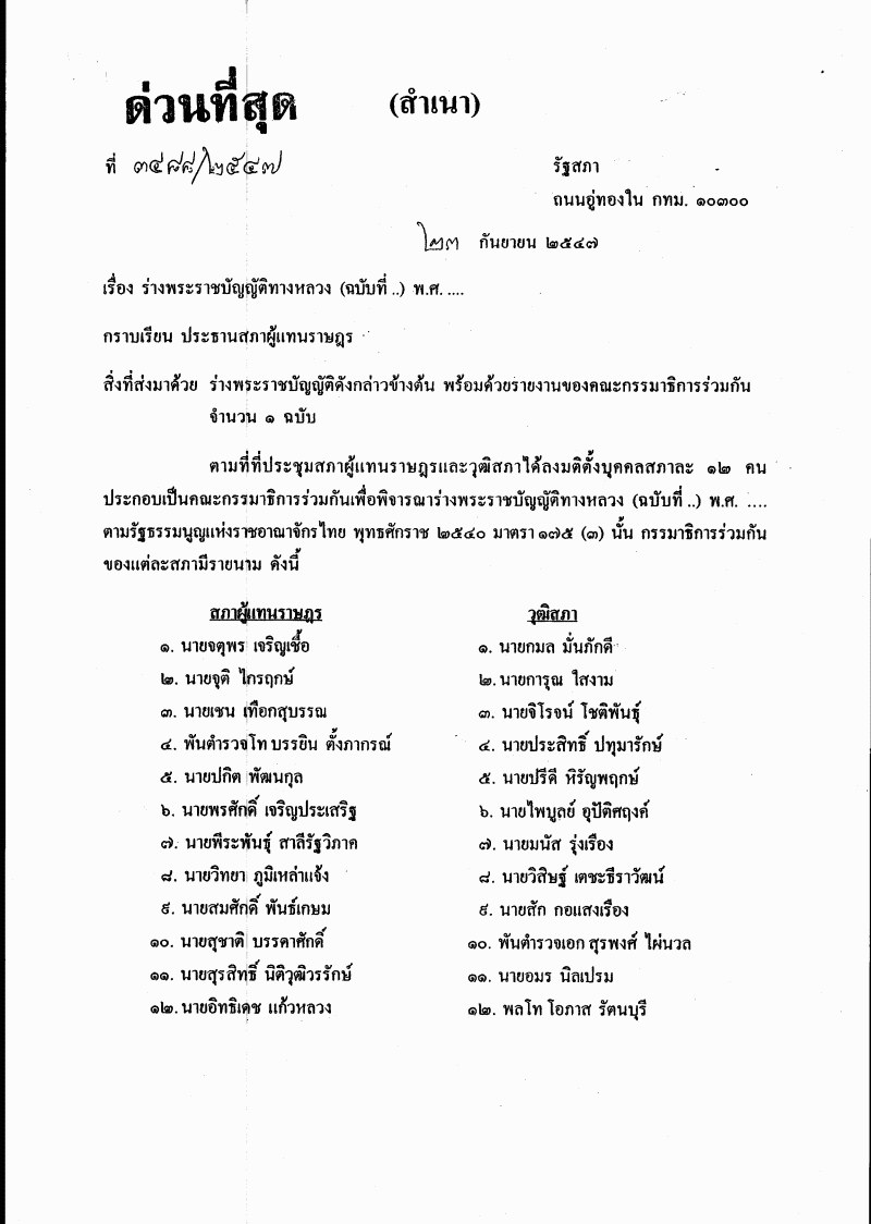 • ร่างพระราชบัญญัติทางหลวง (ฉบับที่ ..) พ.ศ. ....