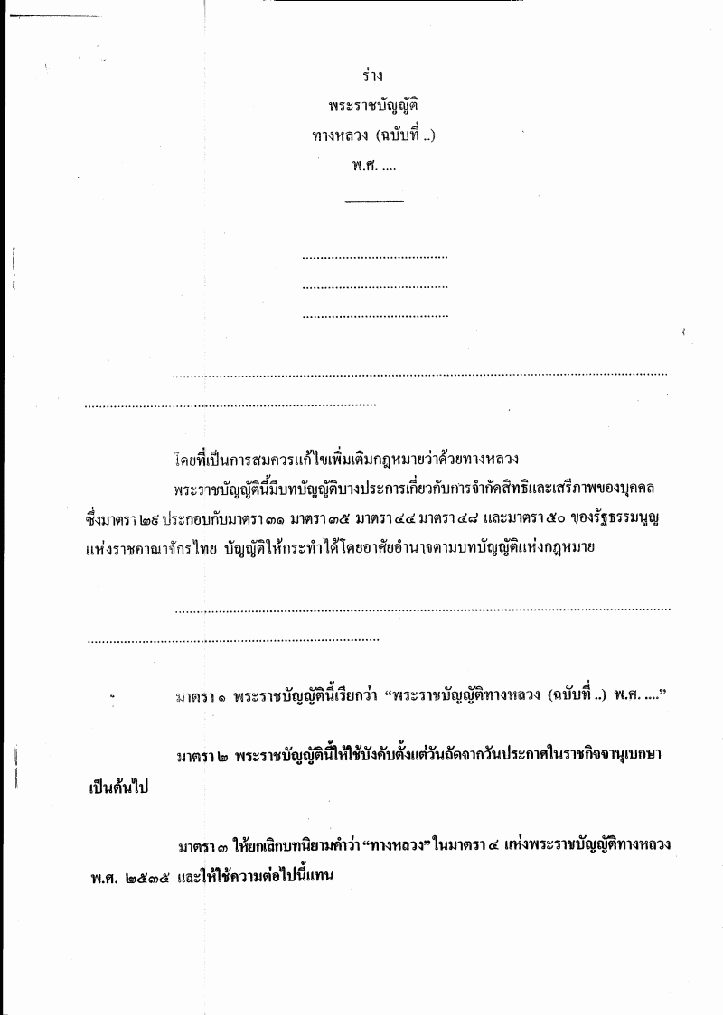 • ร่างพระราชบัญญัติทางหลวง (ฉบับที่ ..) พ.ศ. ....