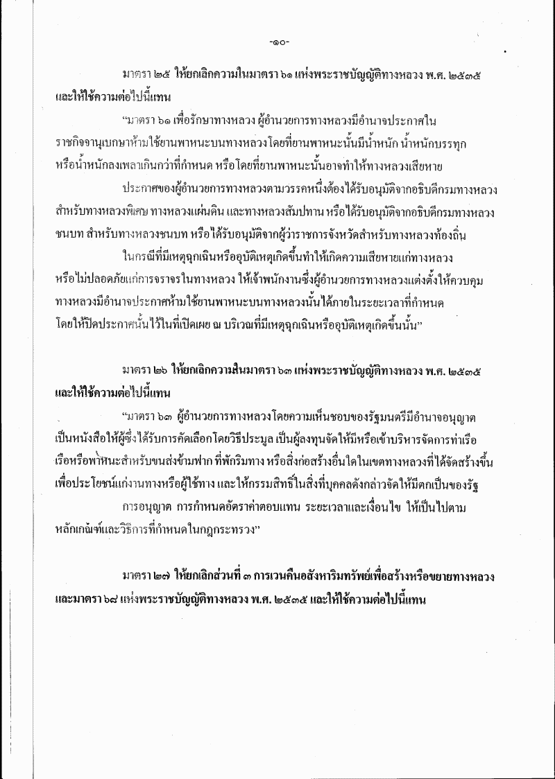 • ร่างพระราชบัญญัติทางหลวง (ฉบับที่ ..) พ.ศ. ....