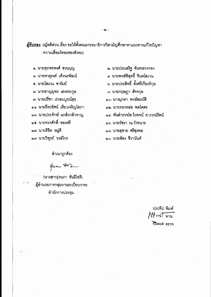 ชื่อเอกสาร :   ญัตติด่วน เรื่อง ขอให้ตั้งคณะกรรมาธิการวิสามัญศึกษาหาแนวทางแก้ไขปัญหาความเสื่อมโทรมของสังคม (นายโภณ เพชรสว่าง เป็นผู้เสนอ)