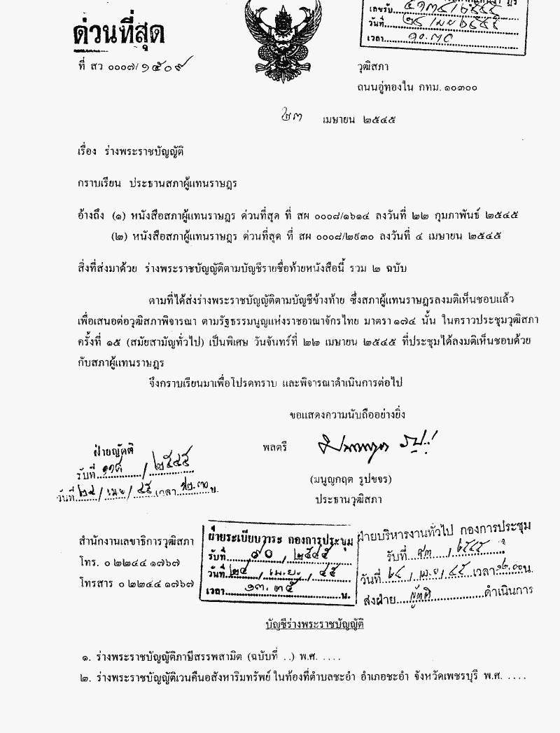 ร่างพระราชบัญญัติภาษีสรรพสามิต (ฉบับที่ ..) พ.ศ. .. ร่างพระราชบัญญัติเวนคืนอสังหาริมทรัพย์ในท้องที่ตำบลชะอำ จังหวัดเพชรบุรี พ.ศ. .... |