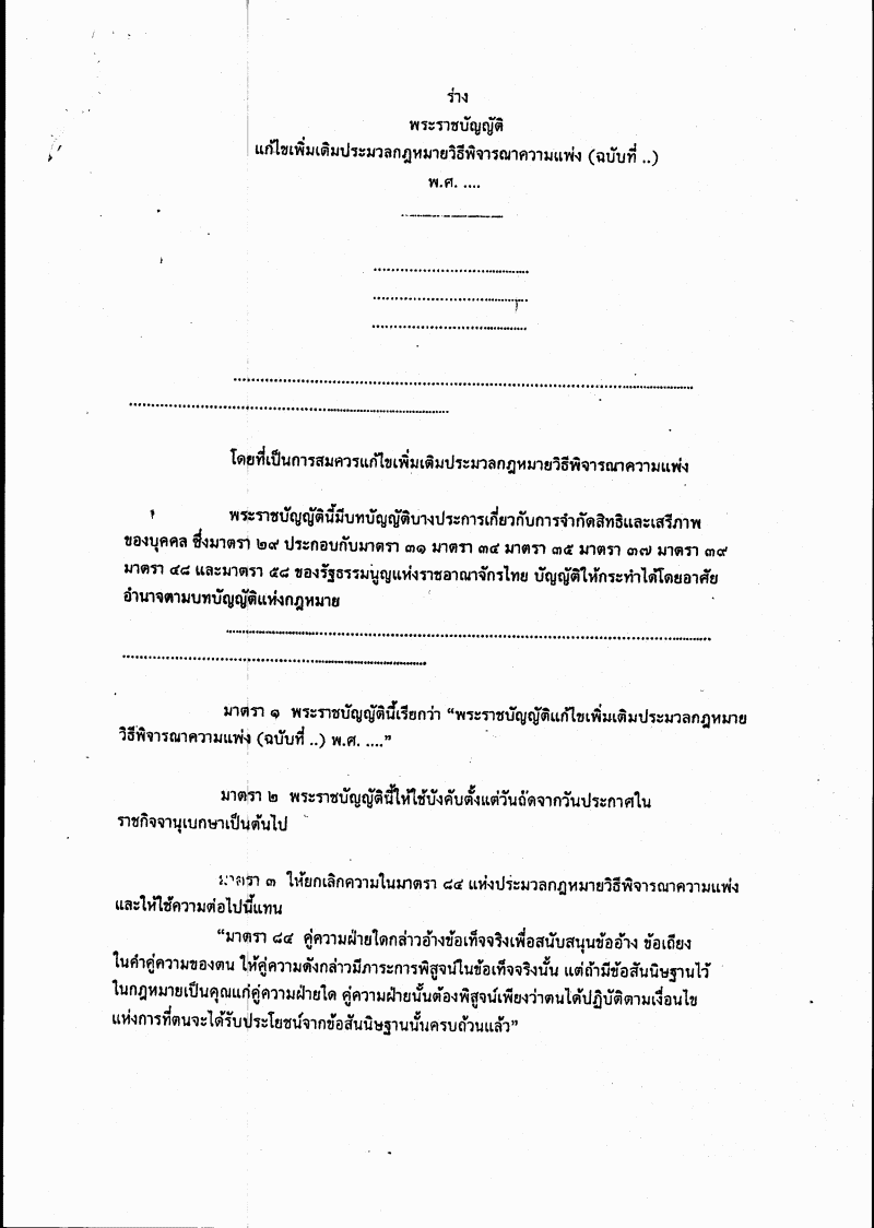 ชื่อเอกสาร :   ร่างพระราชบัญญัติแก้ไขเพิ่มเติมประมวลกฎหมายวิธีพิจารณาความแพ่ง (ฉบับที่ ..) พ.ศ. ....