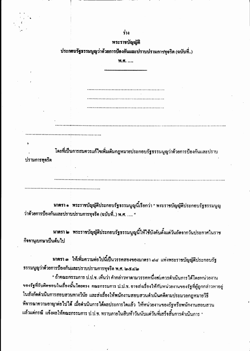 ชื่อเอกสาร :   ร่างพระราชบัญญัติประกอบรัฐธรรมนูญว่าด้วยการป้องกันและปราบปรามการทุจริต (ฉบับที่ ..) พ.ศ. ....