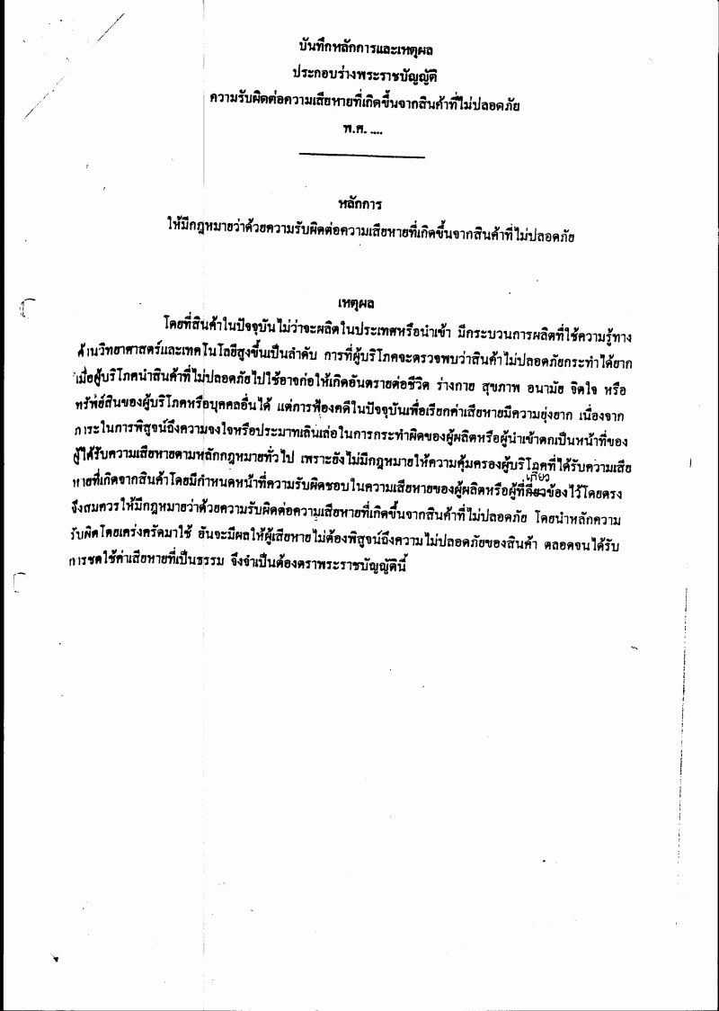 ชื่อเอกสาร :   ร่างพระราชบัญญัติความรับผิดต่อความเสียหายที่เกิดขึ้นจากสินค้าไม่ปลอดภัย พ.ศ. ....
