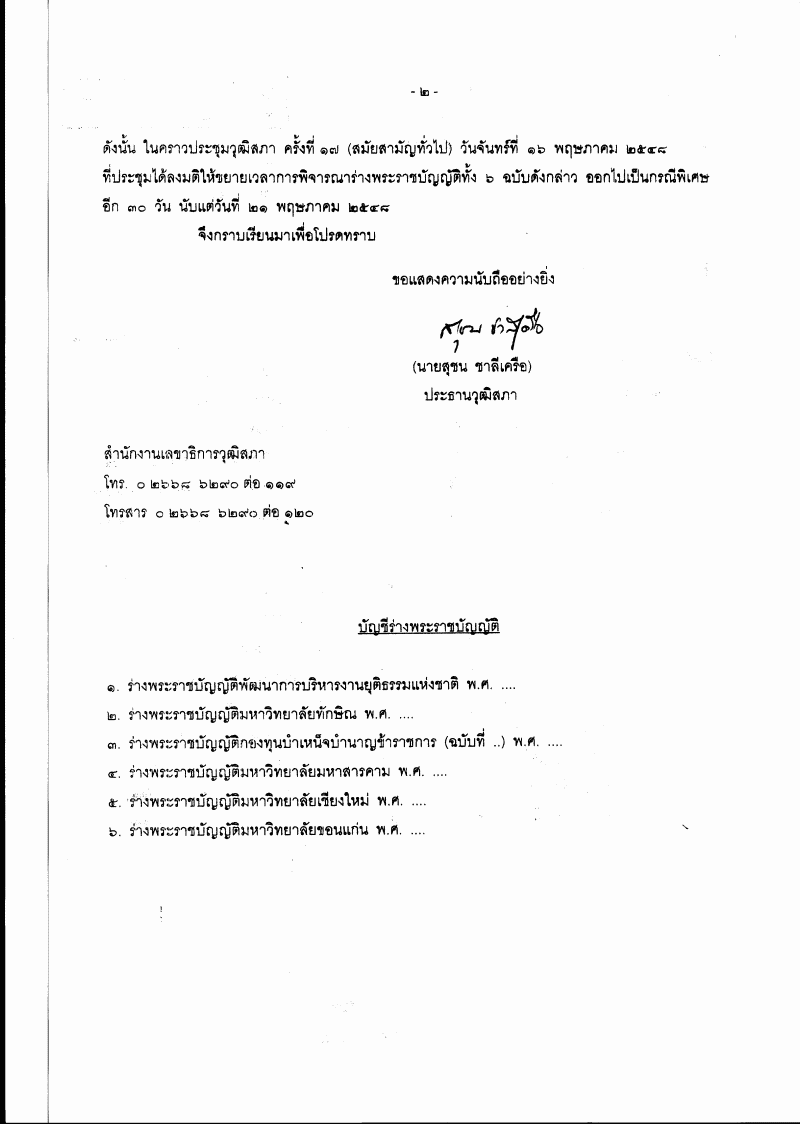 • รับทราบเรื่องวุฒิสภาได้ลงมติให้ขยายเวลาการพิจารณาร่างพระราชบัญญัติ