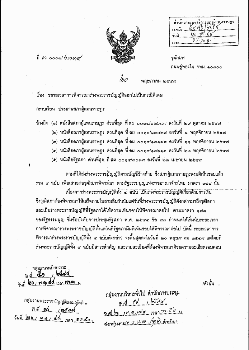 รับทราบเรื่องวุฒิสภาได้ลงมติให้ขยายเวลาการพิจารณาร่างพระราชบัญญัติ |