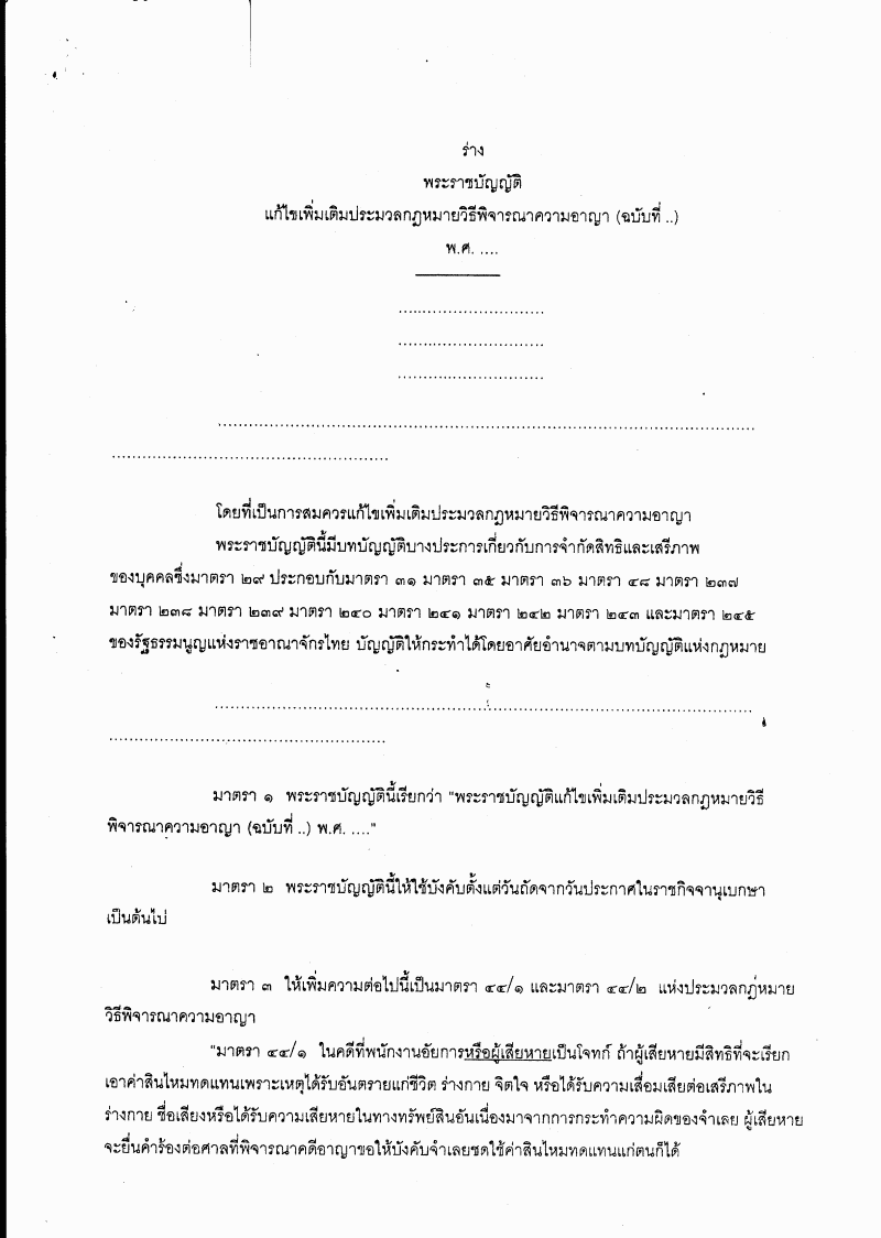 • ร่างพระราชบัญญัติแก้ไขเพิ่มเติมประมวลกฎหมายวิธีพิจารณาความอาญา (ฉบับที่ ..) พ.ศ. ....