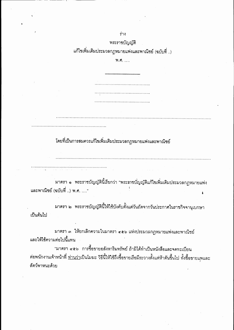 • ร่างพระราชบัญญัติแก้ไขเพิ่มเติมประมวลกฎหมายแพ่งและพาณิชย์ (ฉบับที่ ..) พ.ศ. ....