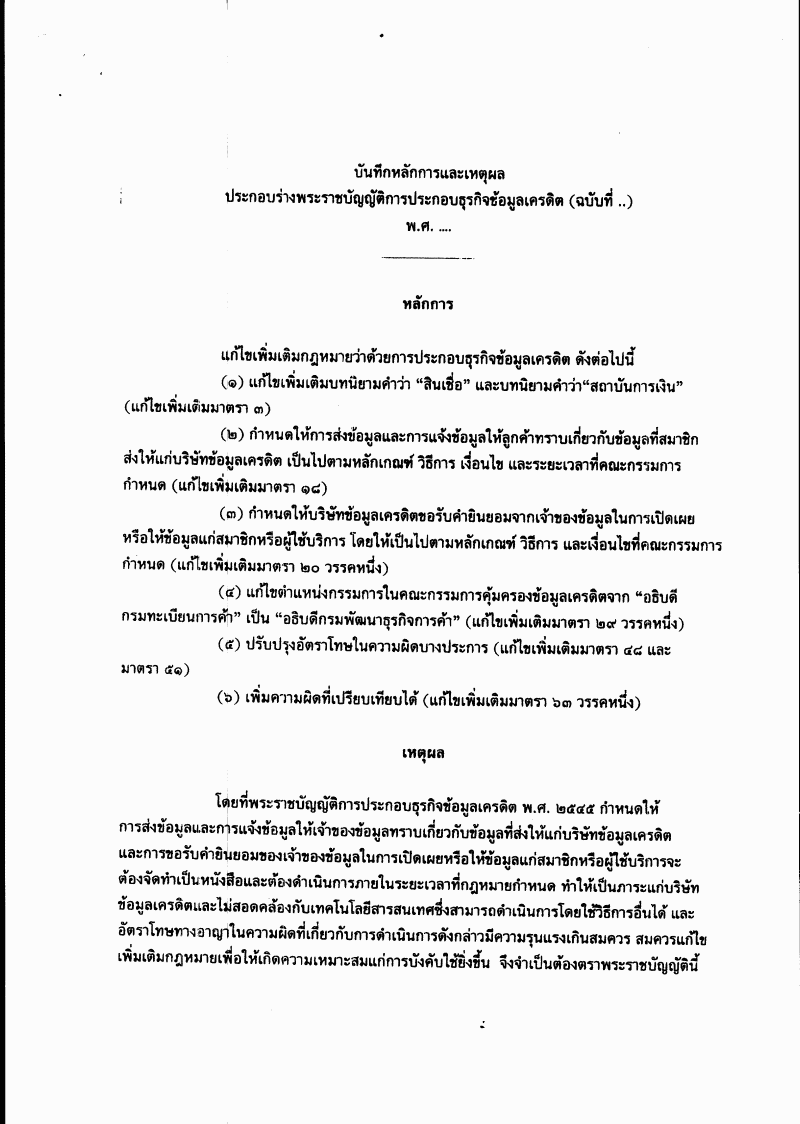 ชื่อเอกสาร :   ร่างพระราชบัญญัติการประกอบธุรกิจข้อมูลเครดิต (ฉบับที่ ..) พ.ศ. ....