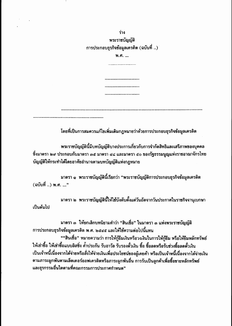 • ร่างพระราชบัญญัติการประกอบธุรกิจข้อมูลเครดิต (ฉบับที่ ..) พ.ศ. ....