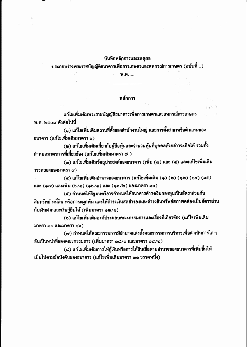 • ร่างพระราชบัญญัติธนาคารเพื่อการเกษตรและสหกรณ์การเกษตร (ฉบับที่ ..) พ.ศ. ....