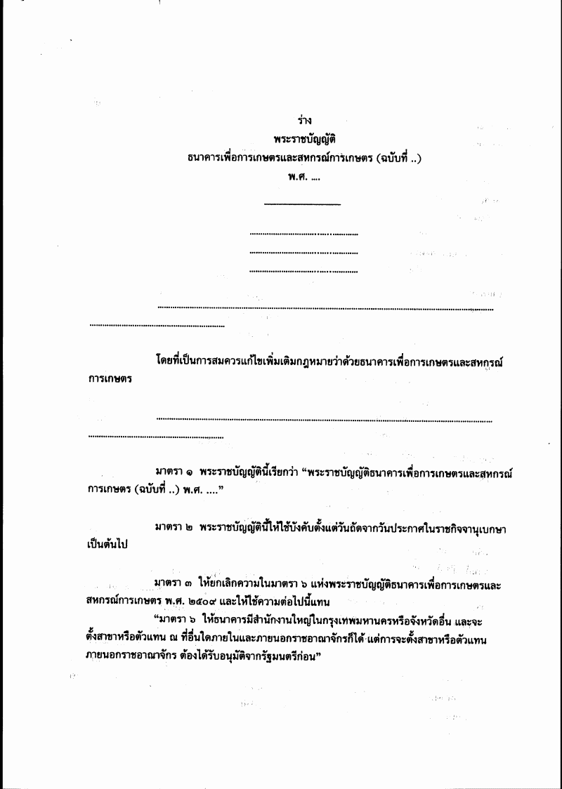 • ร่างพระราชบัญญัติธนาคารเพื่อการเกษตรและสหกรณ์การเกษตร (ฉบับที่ ..) พ.ศ. ....