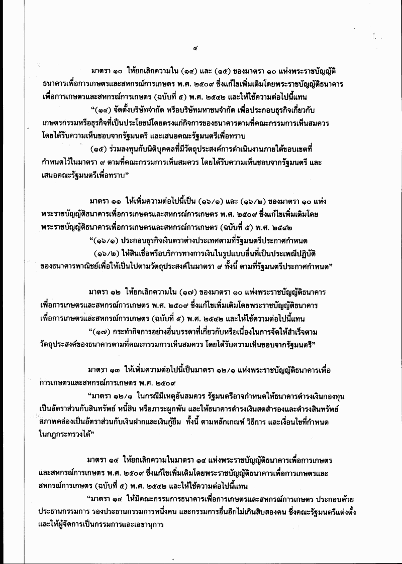 • ร่างพระราชบัญญัติธนาคารเพื่อการเกษตรและสหกรณ์การเกษตร (ฉบับที่ ..) พ.ศ. ....