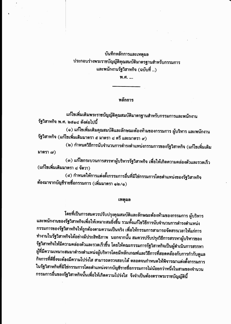 • ร่างพระราชบัญญัติคุณสมบัติมาตรฐานสำหรับกรรมการและพนักงานรัฐวิสาหกิจ (ฉบับที่ ..) พ.ศ. ....