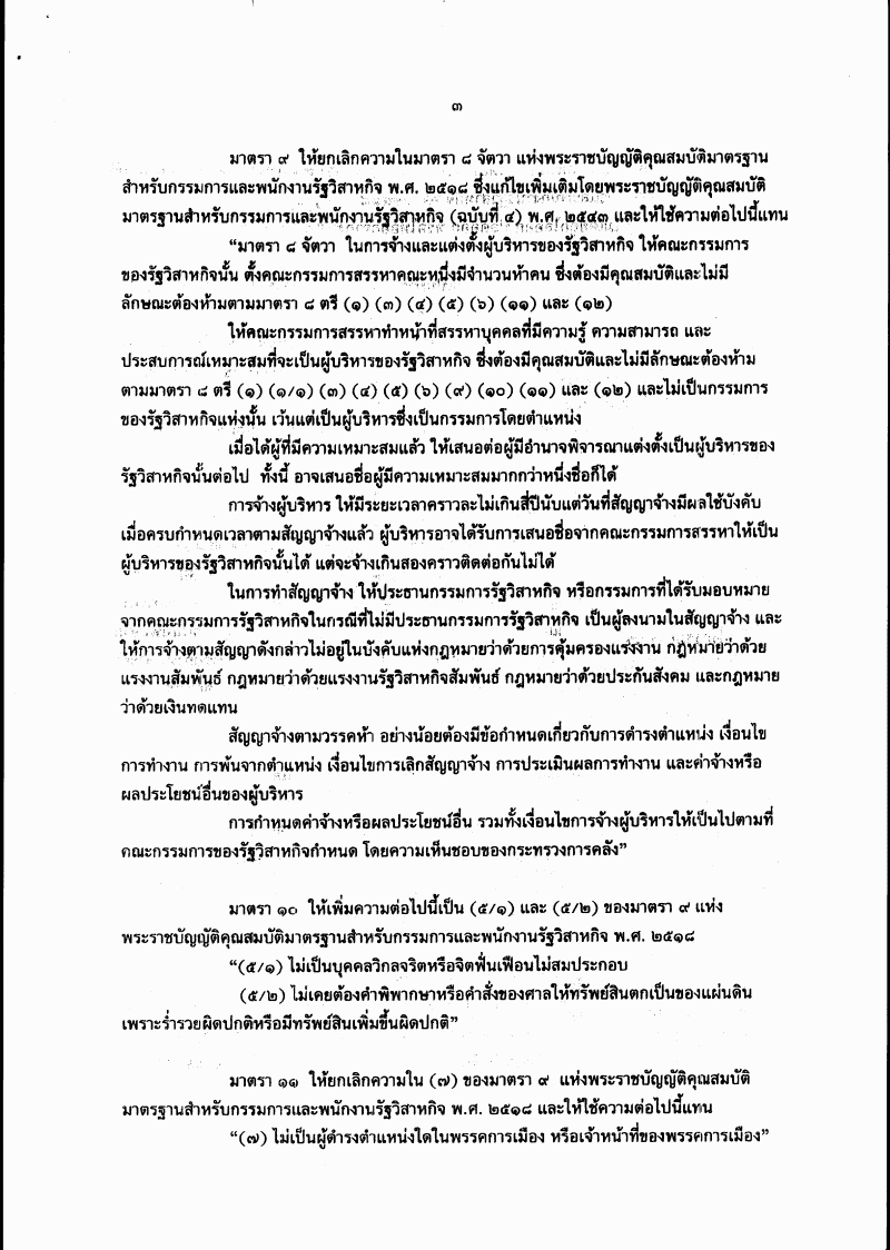 • ร่างพระราชบัญญัติคุณสมบัติมาตรฐานสำหรับกรรมการและพนักงานรัฐวิสาหกิจ (ฉบับที่ ..) พ.ศ. ....