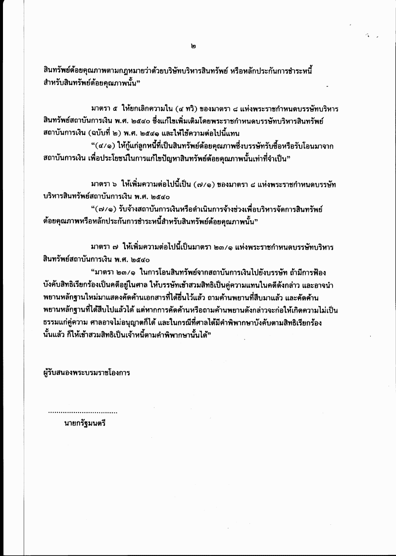 • ร่างพระราชบัญญัติแก้ไขเพิ่มเติมพระราชกำหนดบรรษัทบริหารสินทรัพย์สถาบันการเงิน พ.ศ. 2540 พ.ศ. ....