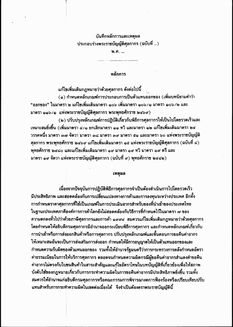 ชื่อเอกสาร :   ร่างพระราชบัญญัติศุลกากร (ฉบับที่ ..) พ.ศ. ....