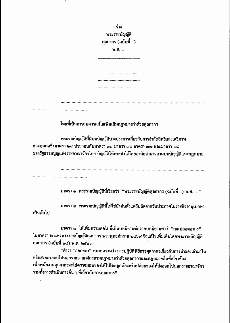 ชื่อเอกสาร :   ร่างพระราชบัญญัติศุลกากร (ฉบับที่ ..) พ.ศ. ....