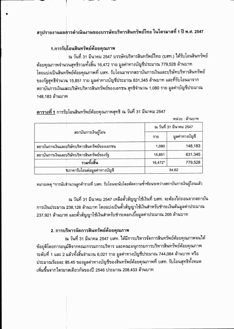 ชื่อเอกสาร : รับทราบรายงานการดำเนินงานของบรรษัทบริหารสินทรัพย์ไทย