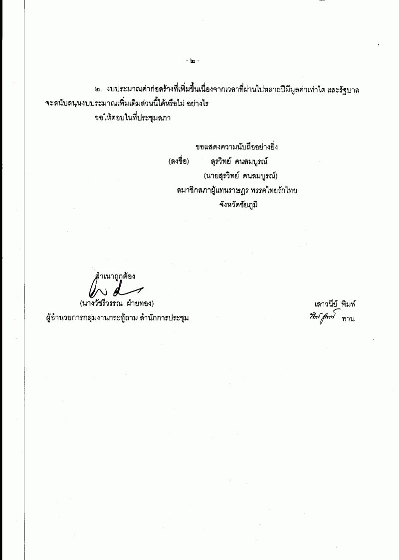 ชื่อเอกสาร : กระทู้ถาม เรื่อง เร่งรัดการก่อสร้างอ่างเก็บน้ำโปร่งขุนเพชร จังหวัดชัยภูมิ