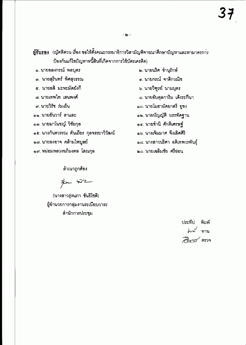 ชื่อเอกสาร :   ญัตติด่วน เรื่อง ขอให้ตั้งคณะกรรมาธิการวิสามัญพิจารณาศึกษาปัญหาและมาตรการป้องกันแก้ไขปัญหาหนี้สินที่เกิดจากการใช้บัตรเครดิต