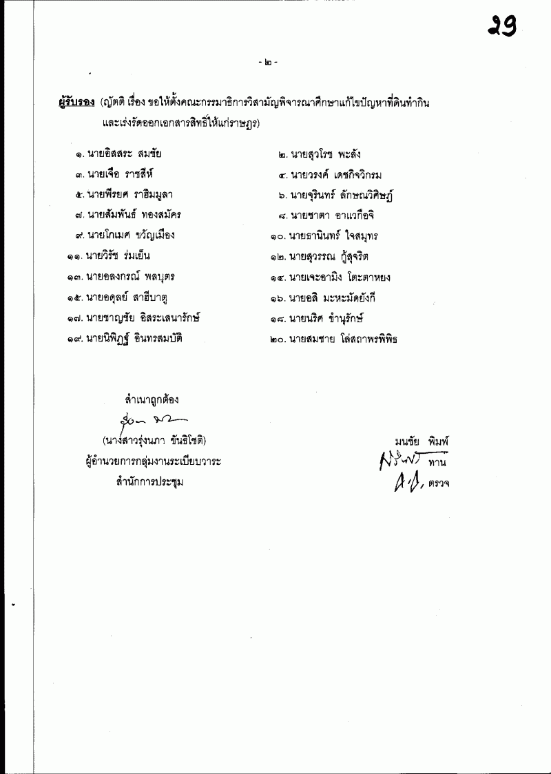 ชื่อเอกสาร :   ญัตติด่วน เรื่อง ขอให้ตั้งคณะกรรมาธิการวิสามัญพิจารณาศึกษาแก้ไขปัญหาที่ดินทำกินและเร่งรัดออกเอกสารสิทธิให้แก่ราษฎร