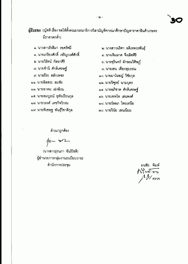 ชื่อเอกสาร :   ญัตติด่วน เรื่อง ขอให้ตั้งคณะกรรมาธิการวิสามัญพิจารณาศึกษาปัญหาราคาสินค้าเกษตรมีราคาตกต่ำ