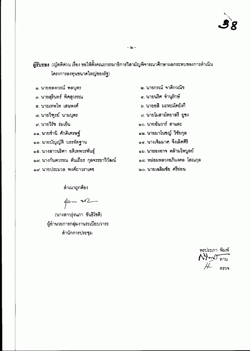 ชื่อเอกสาร : ญัตติด่วน เรื่อง ขอให้ตั้งคณะกรรมาธิการวิสามัญพิจารณาศึกษาผลกระทบของการดำเนินโครงการลงทุนขนาดใหญ่ของรัฐ
