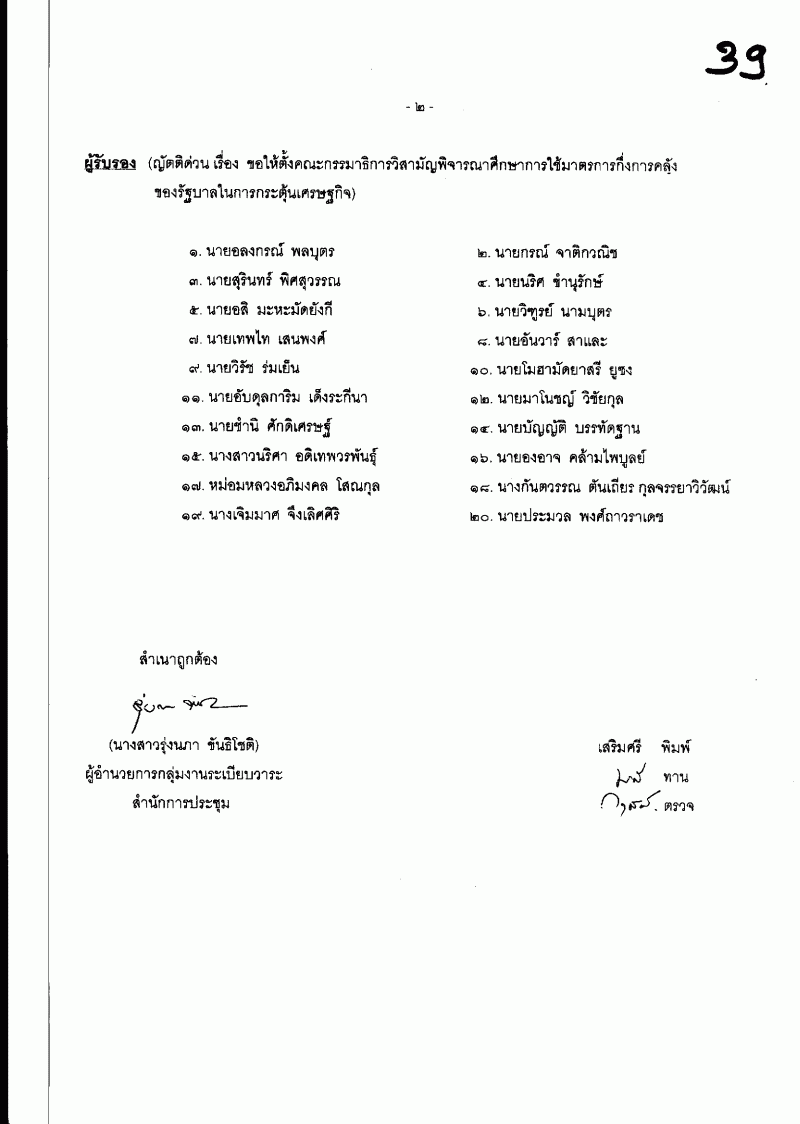 ชื่อเอกสาร : ญัตติด่วน เรื่อง ขอให้ตั้งคณะกรรมาธิการวิสามัญพิจารณาศึกษาการใช้มาตรการกึ่งการคลังของรัฐบาลในการกระตุ้นเศรษฐกิจ