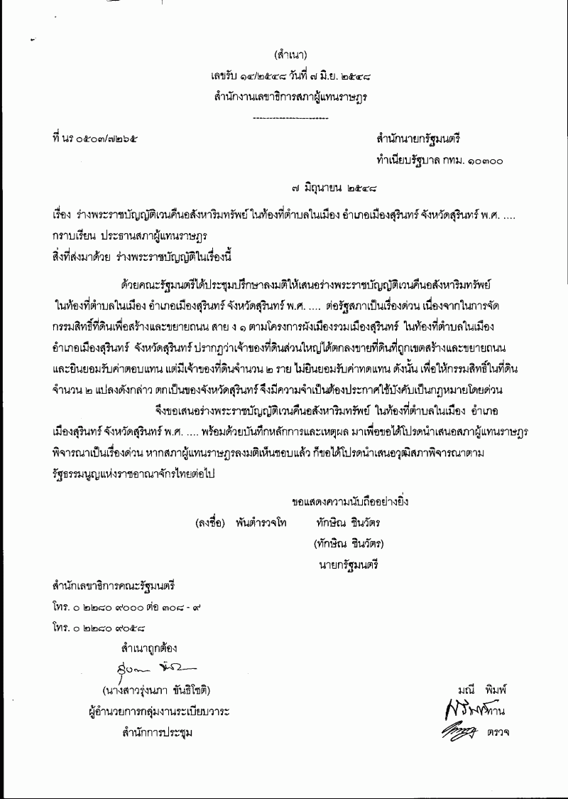 ชื่อเอกสาร :   ร่างพระราชบัญญัติเวนคืนอสังหาริมทรัพย์ ในท้องที่ตำบลในเมือง อำเภอเมืองสุรินทร์ จังหวัดสุรินทร์