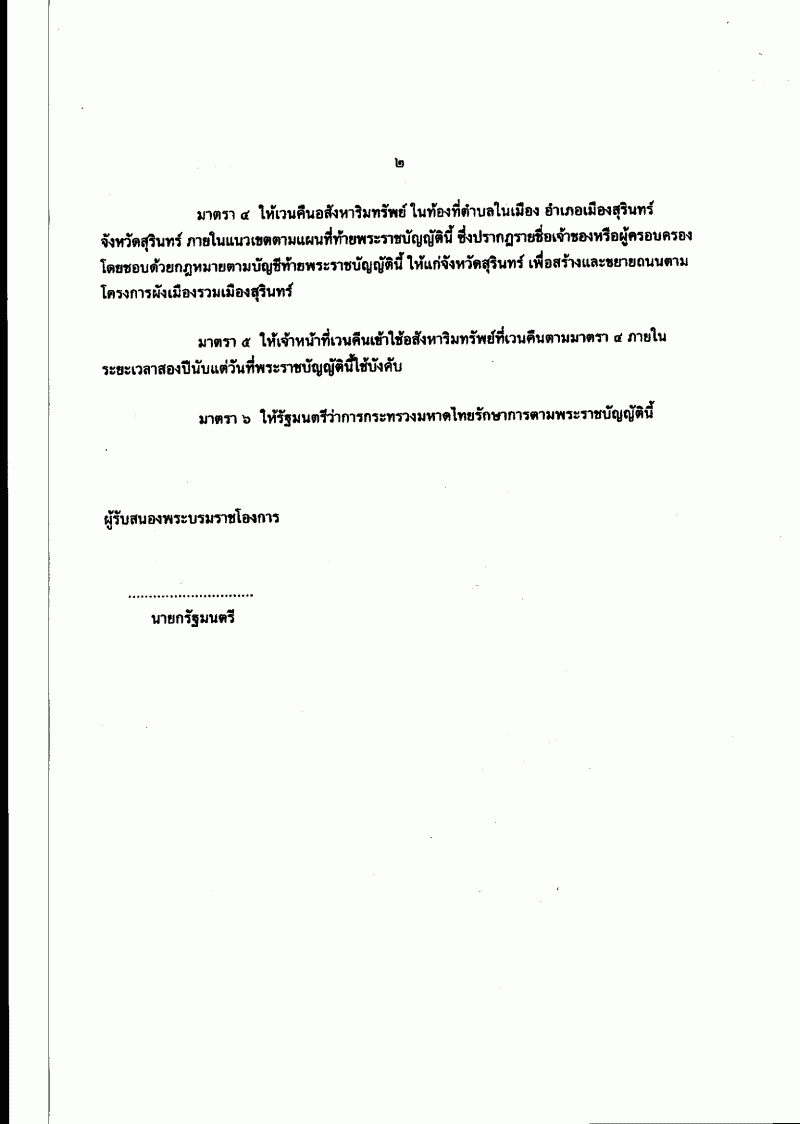 ชื่อเอกสาร :   ร่างพระราชบัญญัติเวนคืนอสังหาริมทรัพย์ ในท้องที่ตำบลในเมือง อำเภอเมืองสุรินทร์ จังหวัดสุรินทร์