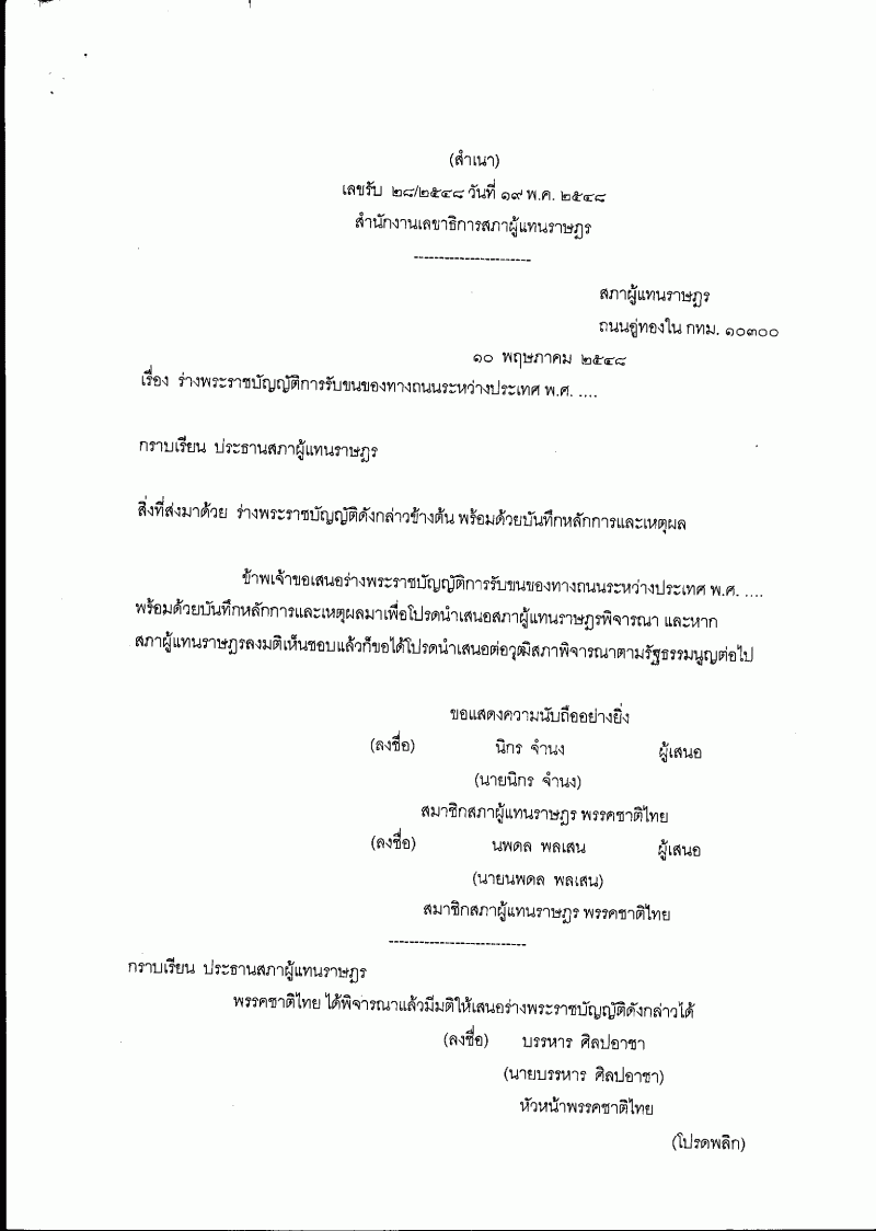 ชื่อเอกสาร :   ร่างพระราชบัญญัติการรับขนของทางถนนระหว่างประเทศ พ.ศ. ....