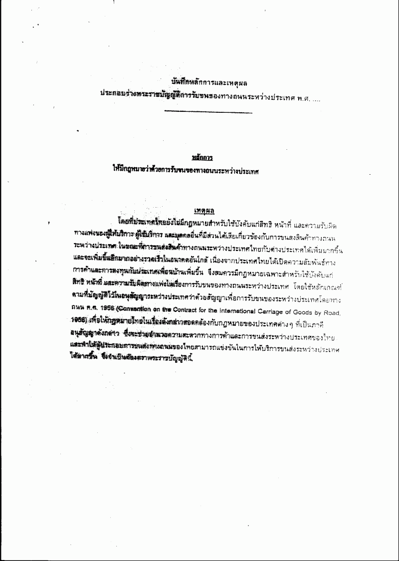 ชื่อเอกสาร :   ร่างพระราชบัญญัติการรับขนของทางถนนระหว่างประเทศ พ.ศ. ....