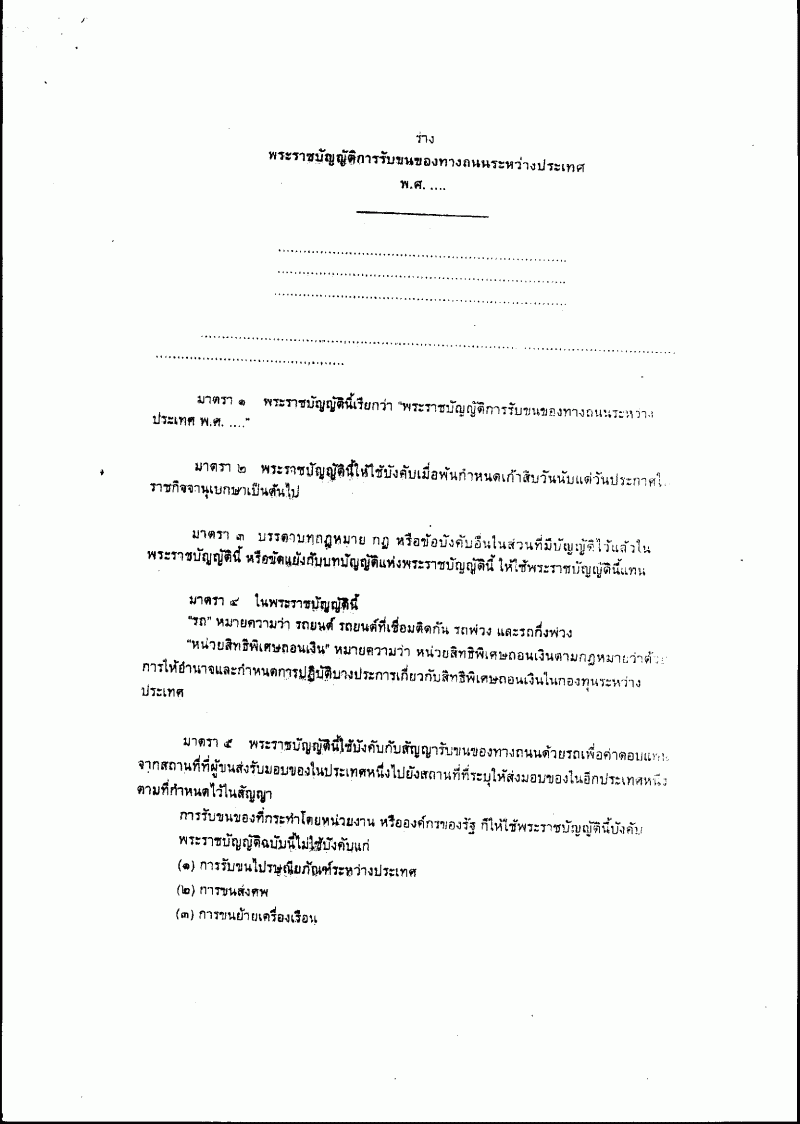 ชื่อเอกสาร :   ร่างพระราชบัญญัติการรับขนของทางถนนระหว่างประเทศ พ.ศ. ....