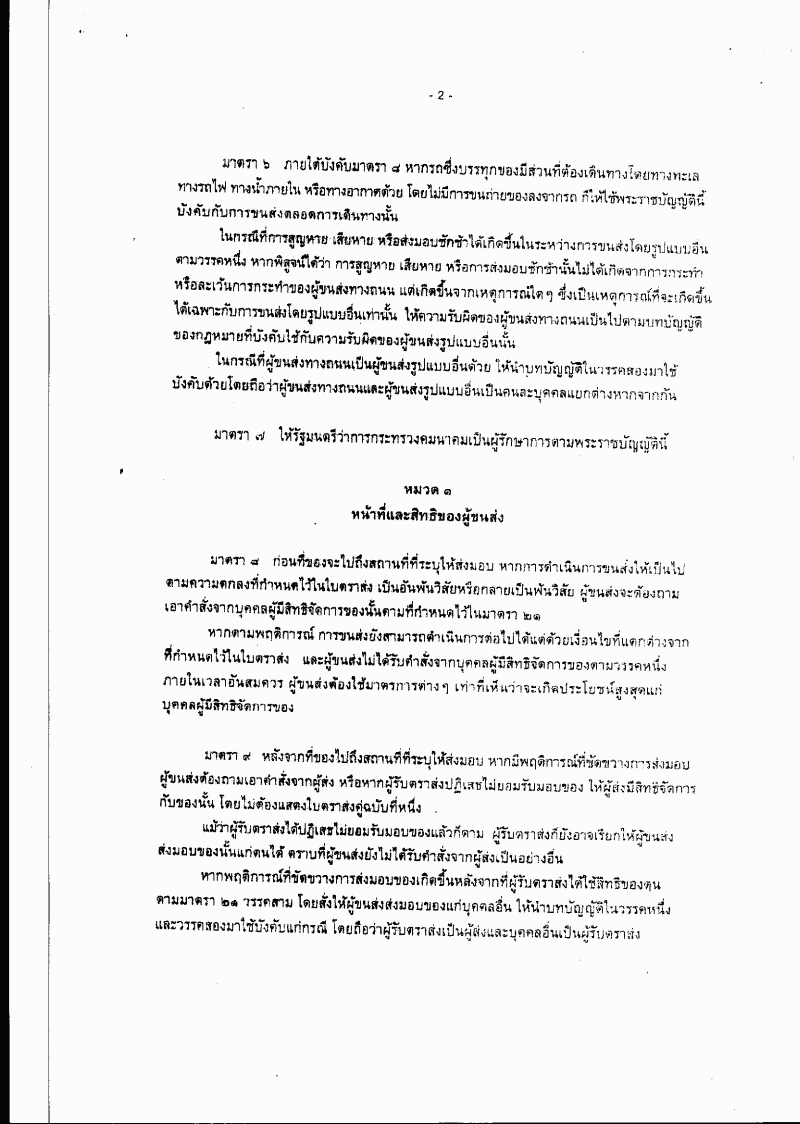 ชื่อเอกสาร :   ร่างพระราชบัญญัติการรับขนของทางถนนระหว่างประเทศ พ.ศ. ....