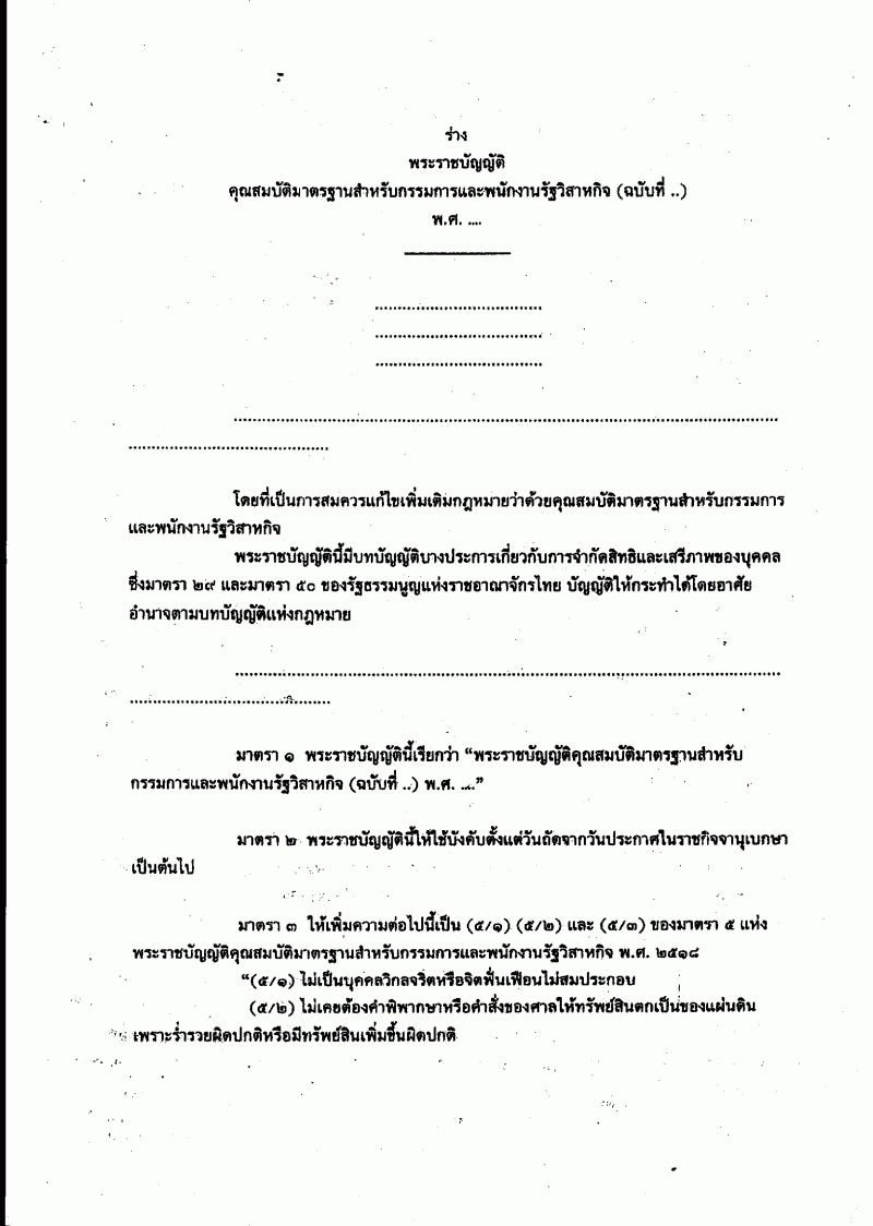 • ร่างพระราชบัญญัติคุณสมบัติมาตรฐานสำหรับกรรมการและพนักงานรัฐวิสาหกิจ (ฉบับที่ ..) พ.ศ. ....